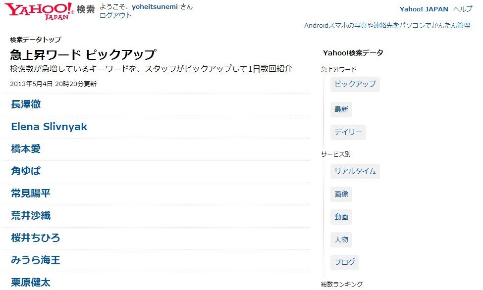 「常見陽平」がYahoo!の検索キーワード上位にもなった。ちょうど、なりすましメール事件がやまもといちろうさんのブログに掲載された日でもあったしね。